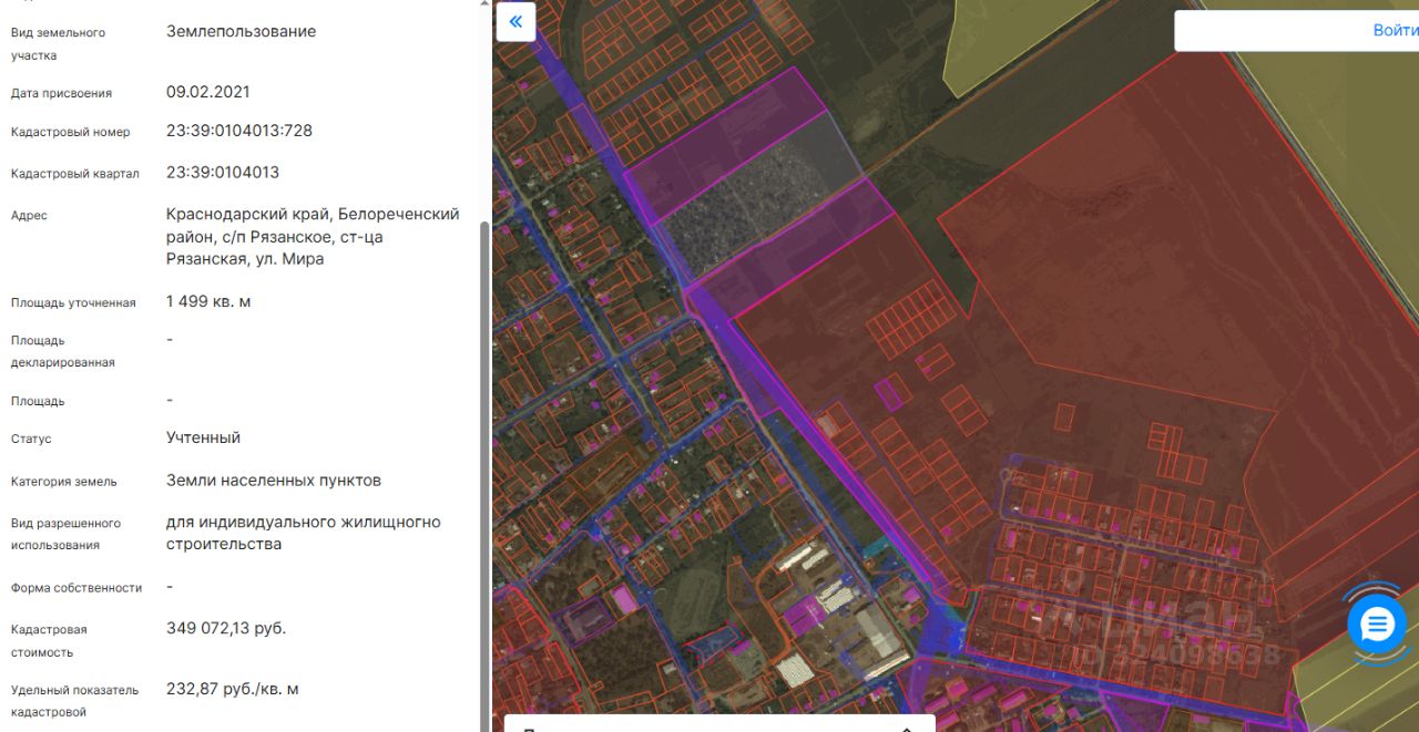 Земельный участок, расположенный по адресу:Российская Федерация, Краснодарский край, Белореченский муниципальный район, Рязанское с/п., ст. Рязанская, ул. Мира, площадью 1499 кв.м., кадастровый номер 23:39:0104013:728, категория земель земли населенных пунктов, разрешенный вид использования для индивидуального жилищного строительства
