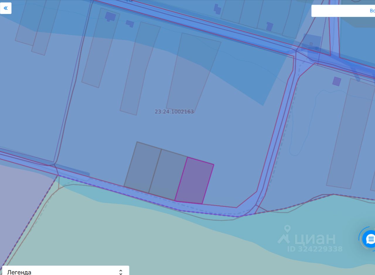 Лот 7 земельный участок площадью 2013 кв. метров, с кадастровым номером 23:24:1002163:326