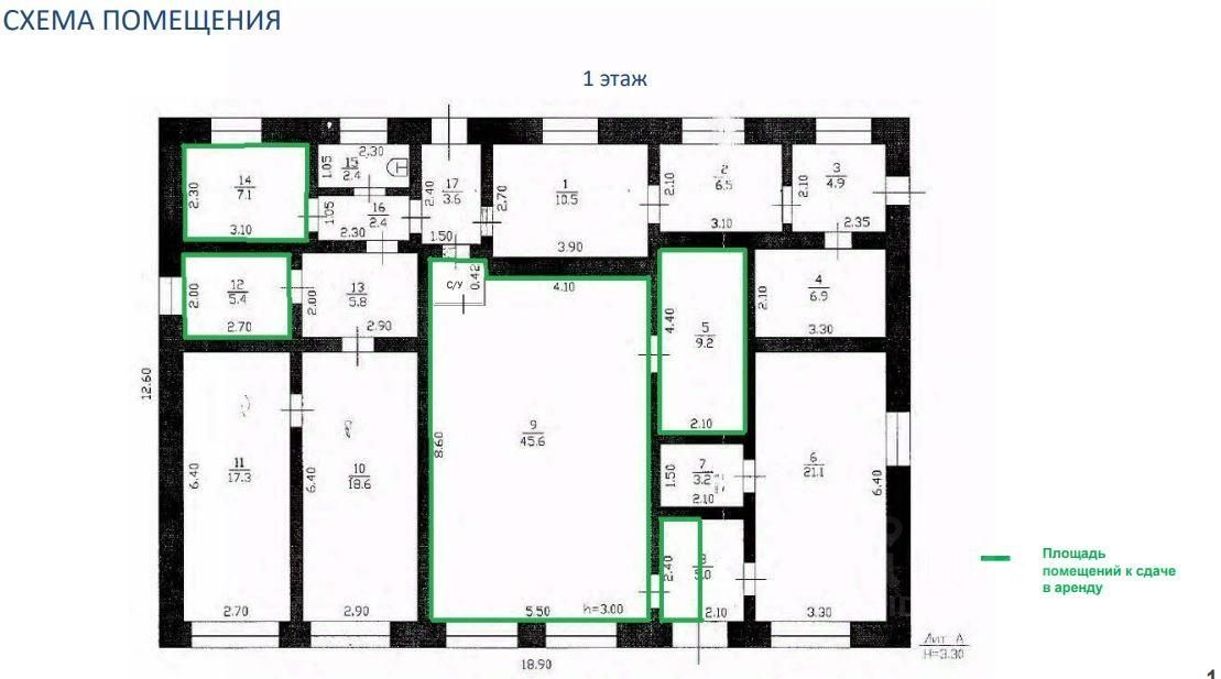 Нежилое помещение общей площадью: 69,8 кв.м.
