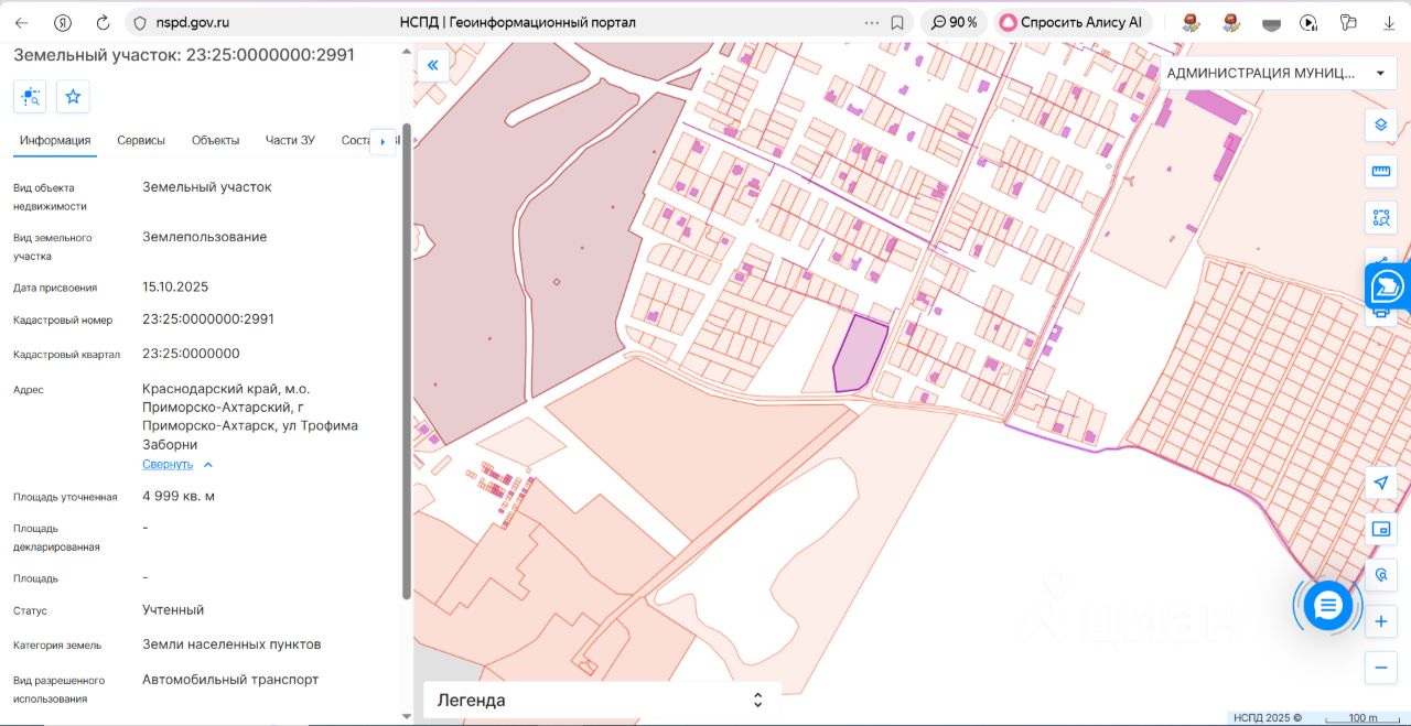 Земельный участок, расположенный по адресу: Краснодарский край, м.о. Приморско-Ахтарский, г. Приморско-Ахтарск, ул. Трофима Заборни, из состава земель населенных пунктов, с разрешенным видом использования автомобильный транспорт, с кадастровым номером 23:25:0000000:2991, площадью 4999 кв.м.