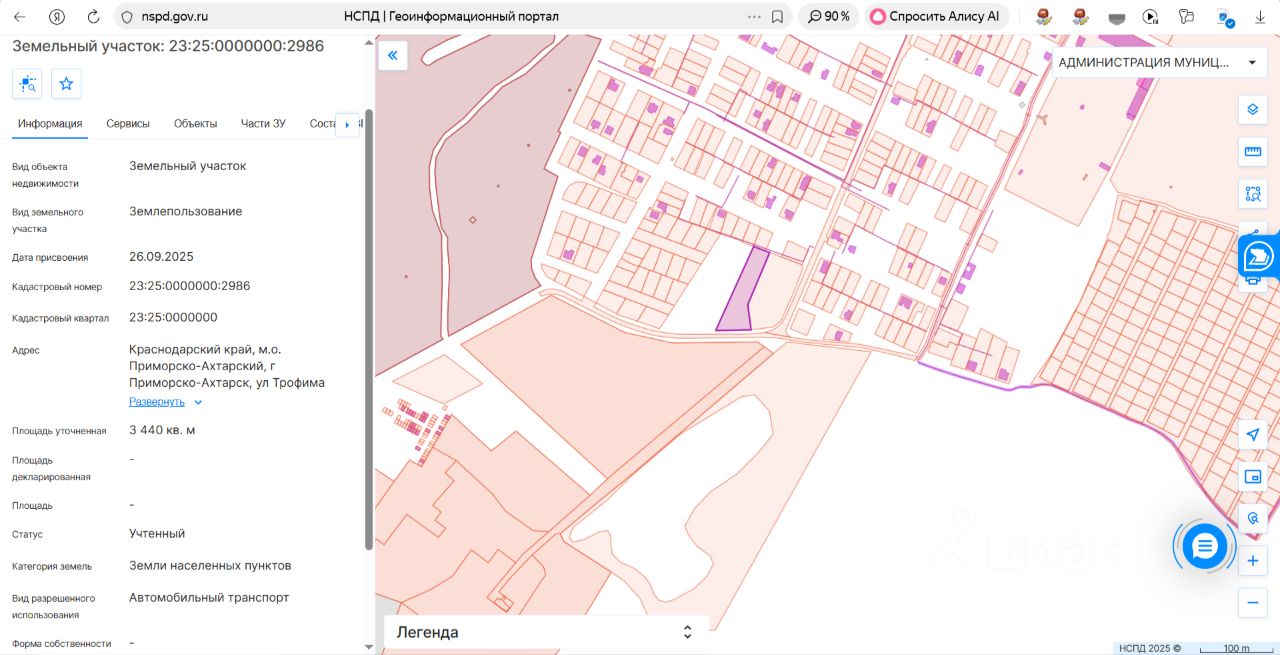 Земельный участок, расположенный по адресу: Краснодарский край, м.о. Приморско-Ахтарский, г. Приморско-Ахтарск, ул. Трофима Заборни, из состава земель населенных пунктов, с разрешенным видом использования автомобильный транспорт, с кадастровым номером 23:25:0000000:2986, площадью 3440 кв.м.