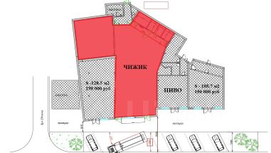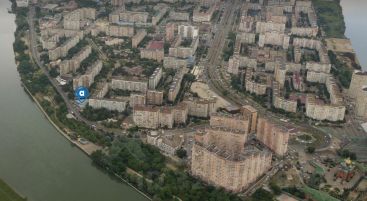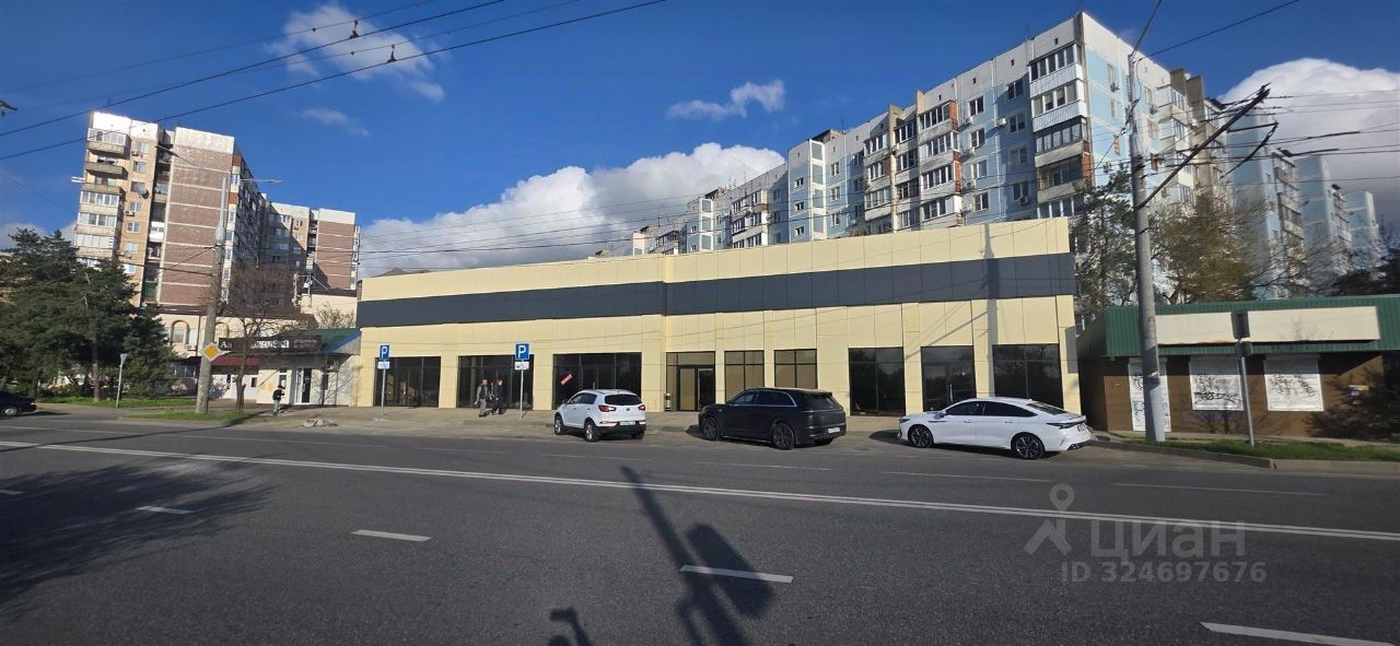 Здание расположено на фасаде большого жилого массива. Рядом остановки транспорта. Въезд в жилой массив.