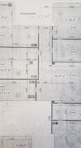 Помещение кабинетной планировки, всего 8 кабинетов площадью от 16 до 60 кв.м. Есть помещение с возможности установки кухни (вода и канализация уже подведены).