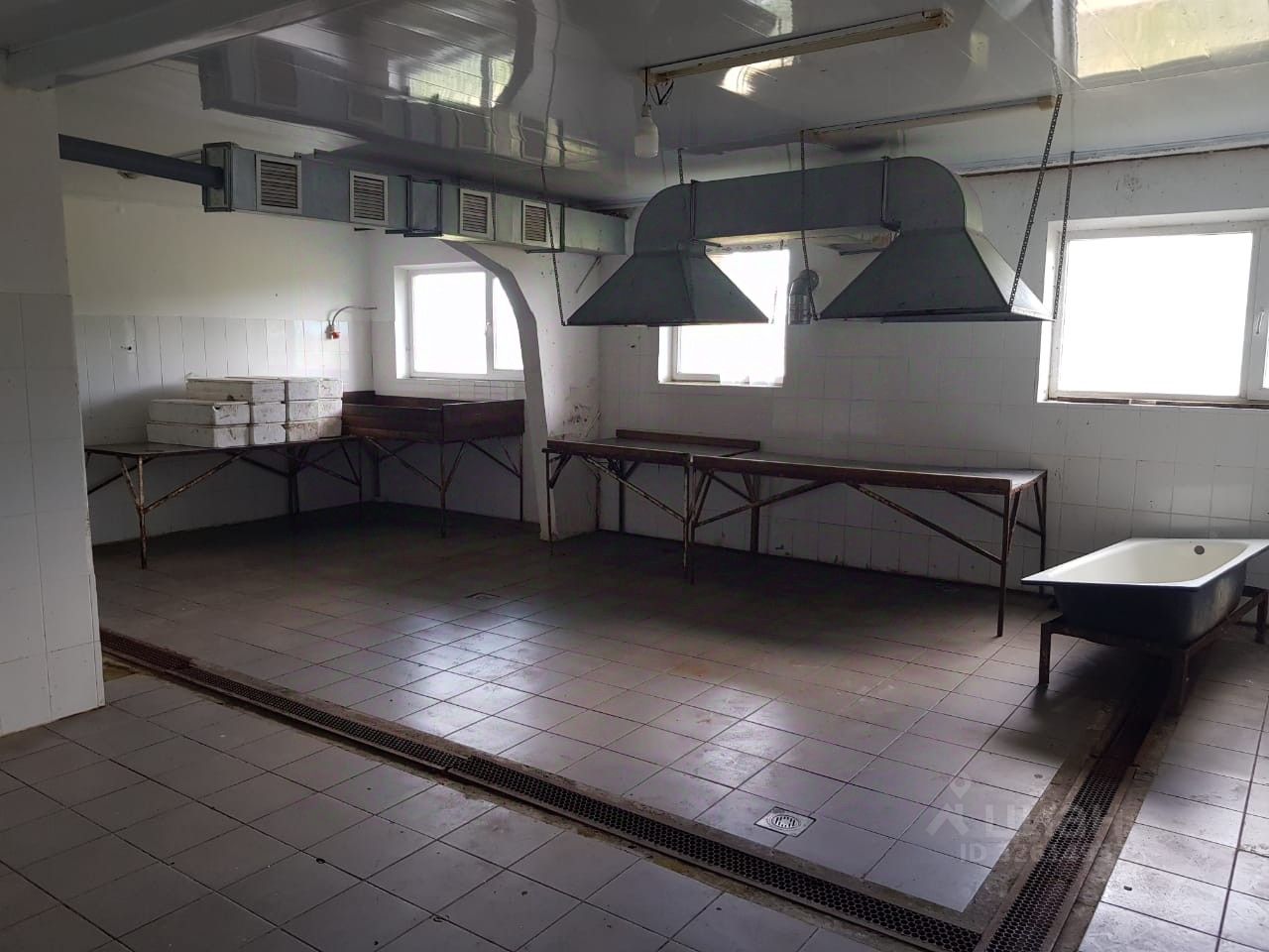 Сдается в аренду два смежных производственно-складских помещения по 800 м2 каждое. Высота потолков 2-6 м, бетонный пол. Электроснабжение 150 кВт, 220/380 В, есть скважина и септик. В одном из помещений рельсы для перемещения техники.