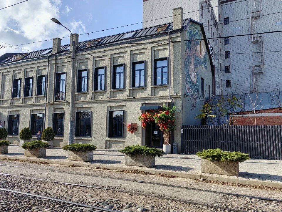 Фасад вдоль движения трамваев.