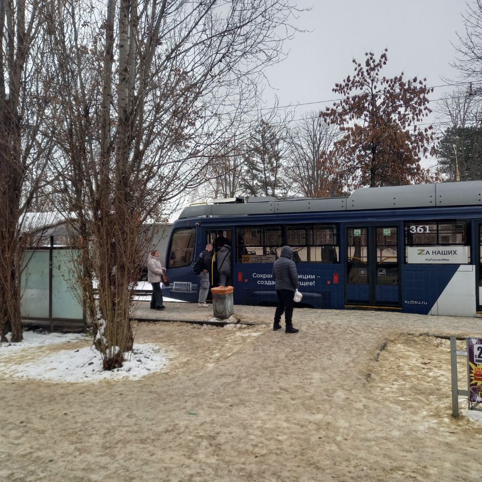 -конечная остановка трамвая ( 4 маршрута трамвая), до остановки трамвая 25 шагов , не переходя дорогу .
