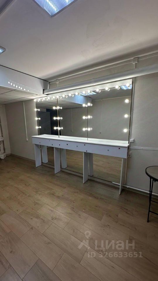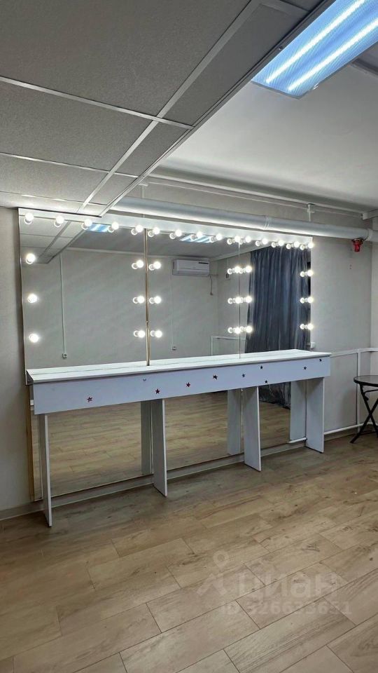 В помещении есть 3 гримёрных зеркала со столиками, с подсветкой, , круглый столик , шкаф для одежды ( если не нужно будет , можешь убрать), проведена холодная и горячая вода (сейчас стоит самая обычная раковина, вы можете поставить себе мойку для парикмахерской, если вам нужно)