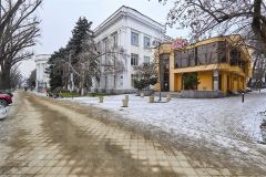 Предусмотрена площадь под установку столиков в весеннее-осеннее время года по фасаду здания