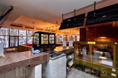 1 этаж - есть отдельный вход для сотрудников, кабинет для персонала, кухня, 3 цеха- холодный, рыбный , для приготовления мучной продукции, кладовки, с/у, подсобные помещения.