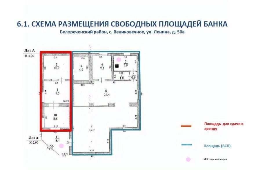 Сбер А предлагает к аренде нежилое помещение площадью 30,01 кв.м, расположенных по адресу: Краснодарский край, м.р-н Белореченский, с.п. Великовечненское, с. Великовечное, ул. Ленина, д. 50А