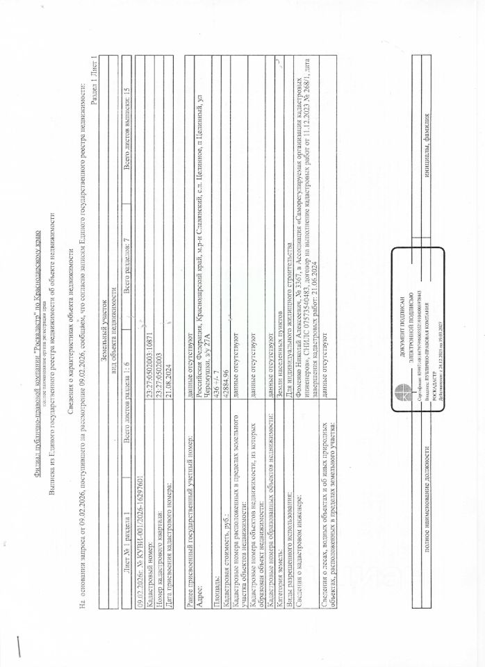 Земельный участок, расположенный по адресу: Российская Федерация, Краснодарский край, Славянский муниципальный район, Целинное сельское поселение, пос. Целинный, ул. Черемушки, земельный участок 27А