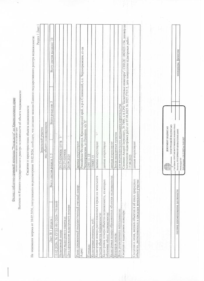 Земельный участок, расположенный по адресу: Российская Федерация, Краснодарский край, Славянский муниципальный район, Черноерковское сельское поселение, ст-ца Черноерковская, ул. Пушкина, земельный участок 3Г