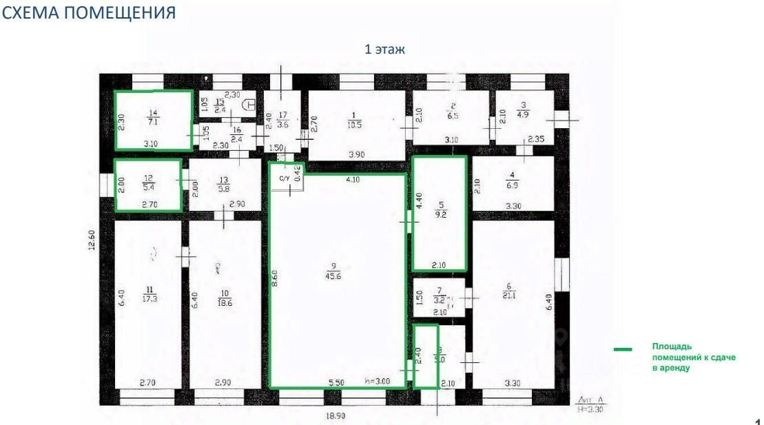Нежилое помещение общей площадью: 69,8 кв.м.