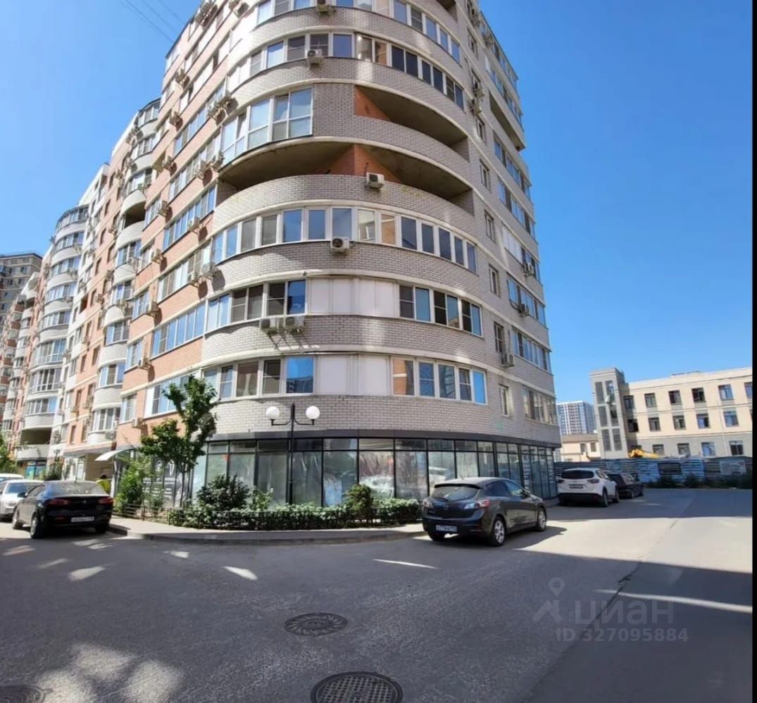 Торец многоквартирного дома. Отлично просматривается с улицы Лоцманской (заезд в жилой комплекс). Большой трафик. Помещение с красивым полукруглым витражом.