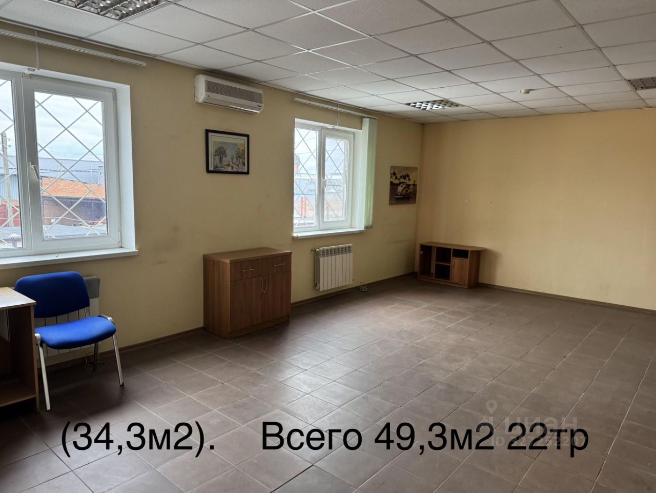 Теплое совмещенное помещение 14,8+34,3=49,1 м2 на втором этаже кирпичного здания 22тр в мес.
