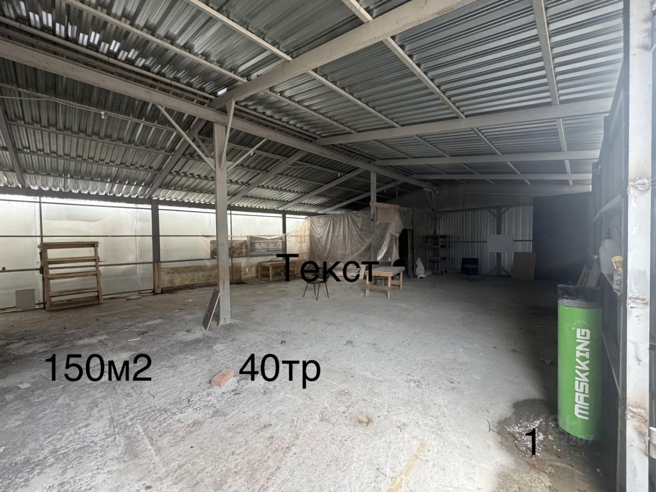 Металлический неутеплённый склад 150м2 40тр в мес.