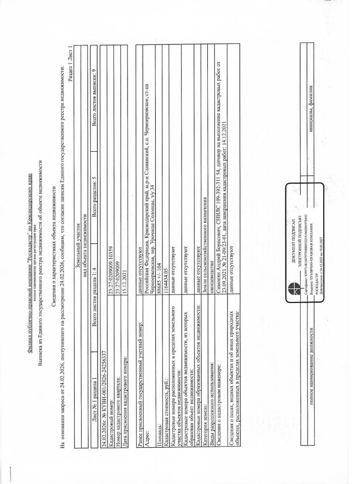 Земельный участок, расположенный по адресу: Российская Федерация, Краснодарский край, Славянский муниципальный район, Черноерковское сельское поселение, ст-ца Черноерковская, тер. Урочище Солонцы, земельный участок 34