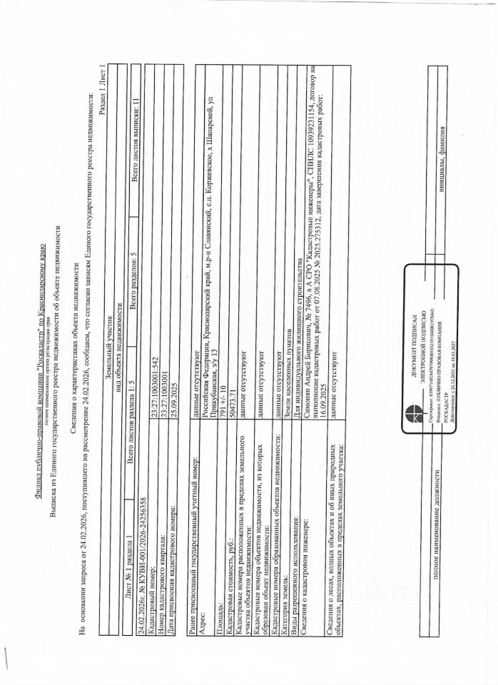 Земельный участок, расположенногоый по адресу: Российская Федерация, Краснодарский край, Славянский муниципальный район, Коржевское сельское поселение, х. Шапарской, ул. Прикубанская, земельный участок 13