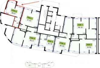 Фасад помещения выполнен из современных композитов, в едином стиле с ЖК.