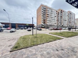 Входная группа расположена напротив "Магнит" и "Хадыжи Плюс" на проезжую часть и прогулочную зону.