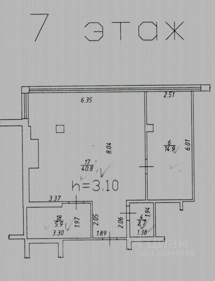 На 7/10 этаже. Свой санузел, есть помещение под кухню. Офис находится непосредственно в центре города.