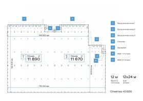 • Шаг колонн 12 х 24.