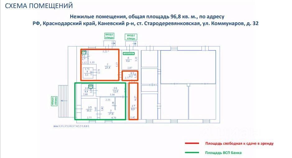 Сбер А предлагает к реализации нежилое помещение площадью 45,6 кв.м, расположенных по адресу: Краснодарский край, Каневский район, ст. Стародеревянковская, ул. Коммунаров, д.32