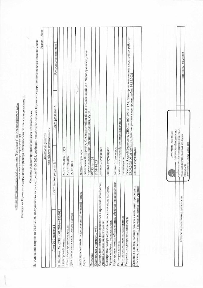 Земельный участок, расположенный по адресу: Российская Федерация, Краснодарский край, Славянский муниципальный район, Черноерковское сельское поселение, ст-ца Черноерковская, тер. Урочище Солонцы, земельный участок 34