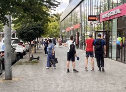 Очень оживлённое место, трамвайная остановка.