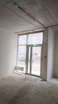 Помещение светлое, с высокими потолками, большими окнами в пол, в хорошей локации.