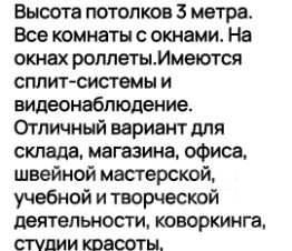 Отличный вариант для магазина, склада, парикмахерской, швейной мастерской, бильярда, сборочного производства, для учебной и творческой деятельности, студии красоты и спа- услуг.