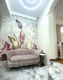 В студии выполнен дизайнерский ремонт. Материалы ремонта - дорогие, мебель интерьера - достойные. Всего 50 кв. м.