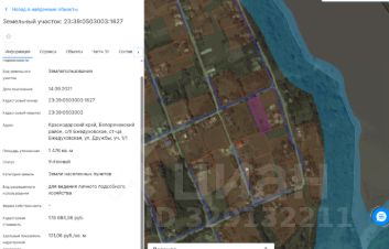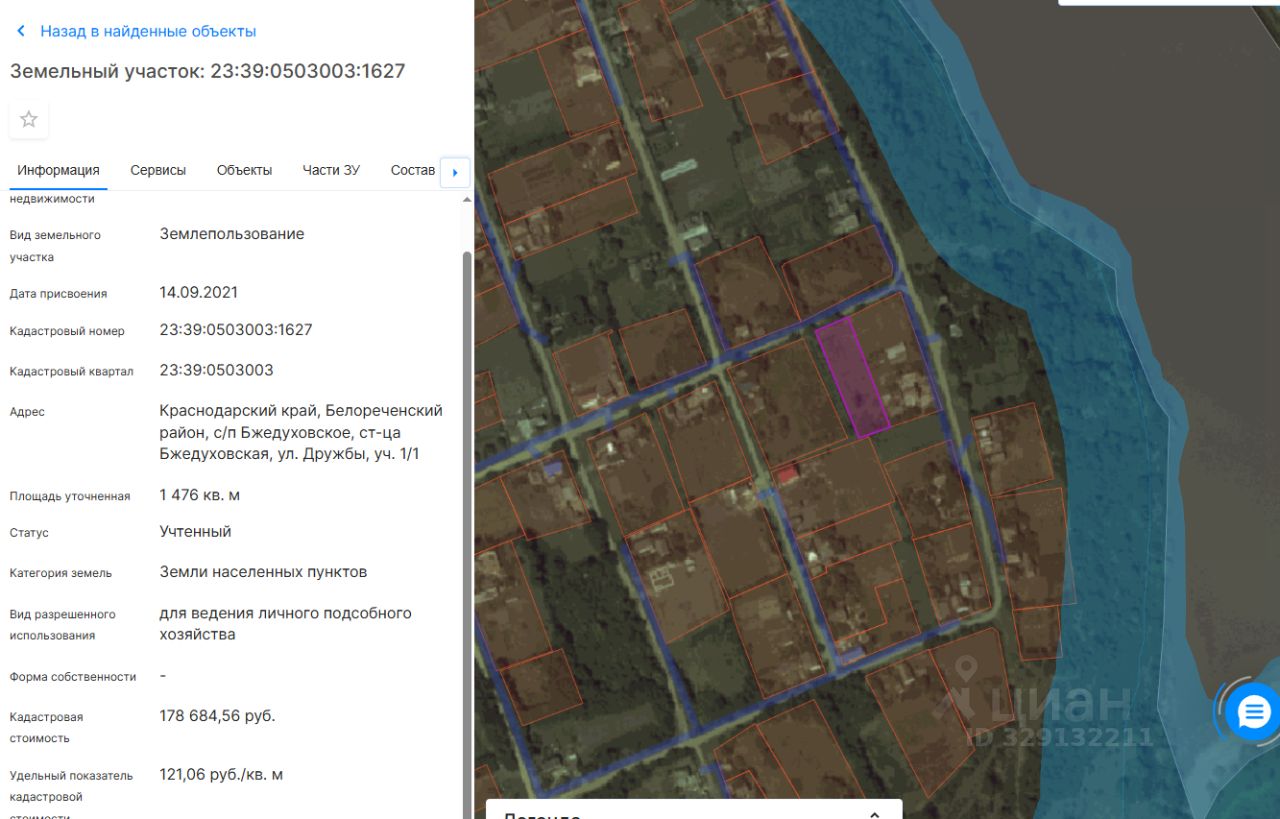 Земельный участок, расположенный по адресу:Российская Федерация, Краснодарский край, Белореченский район, Бжедуховское с/п., ст. Бжедуховская, ул. Дружбы, уч.1/1, площадью 1476 кв.м., кадастровый номер 23:39:0503003:1627, категория земель земли населенных пунктов, разрешенный вид использования для ведения личного подсобного хозяйства.