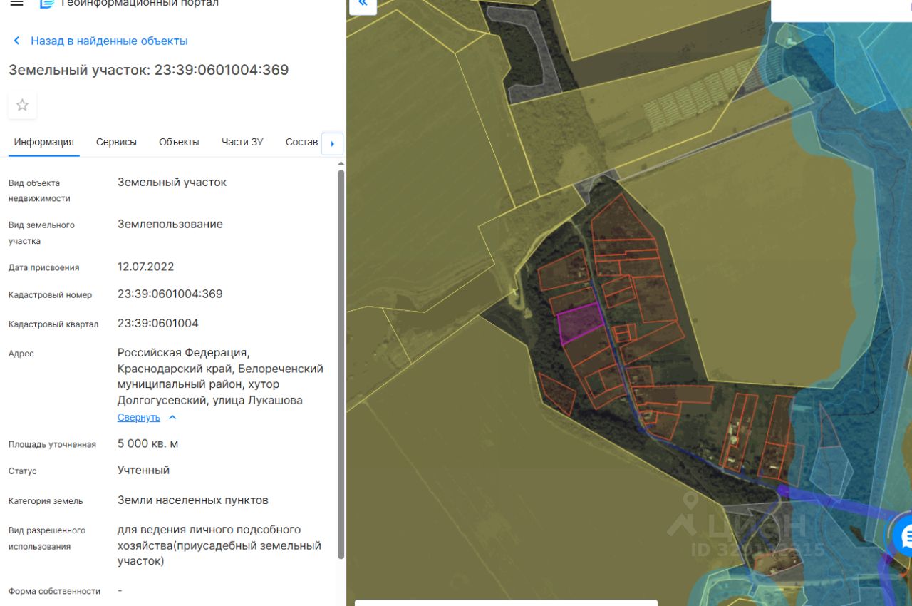 Земельный участок, расположенный по адресу:Российская Федерация, Краснодарский край, Белореченский район, Дружненское с/п.,х. Лукашев, ул. Лукашева, площадью 5000 кв.м., кадастровый номер 23:39:0601004:369, категория земель земли населенных пунктов, разрешенный вид использования для ведения личного подсобного хозяйства (приусадебный земельный участок)