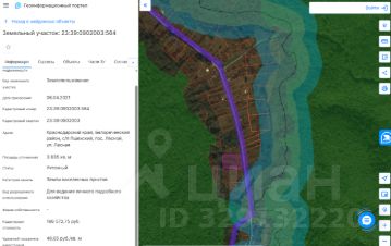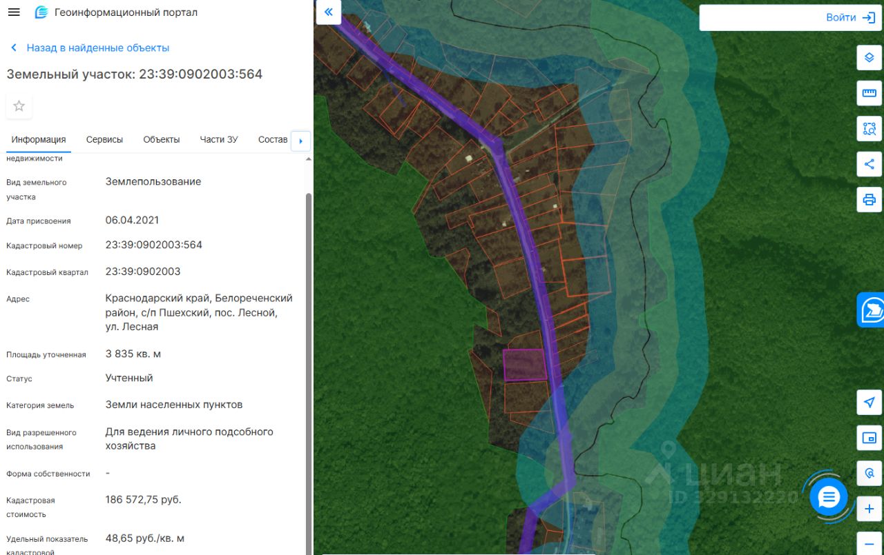 Земельный участок, расположенный по адресу:Российская Федерация, Краснодарский край, Белореченский муниципальный район, Пшехское с/п., п. Лесной, ул. Лесная, площадью 3835 кв.м., кадастровый номер 23:39:0902003:564, категория земель земли населенных пунктов, разрешенный вид использования для ведения личного подсобного хозяйства.