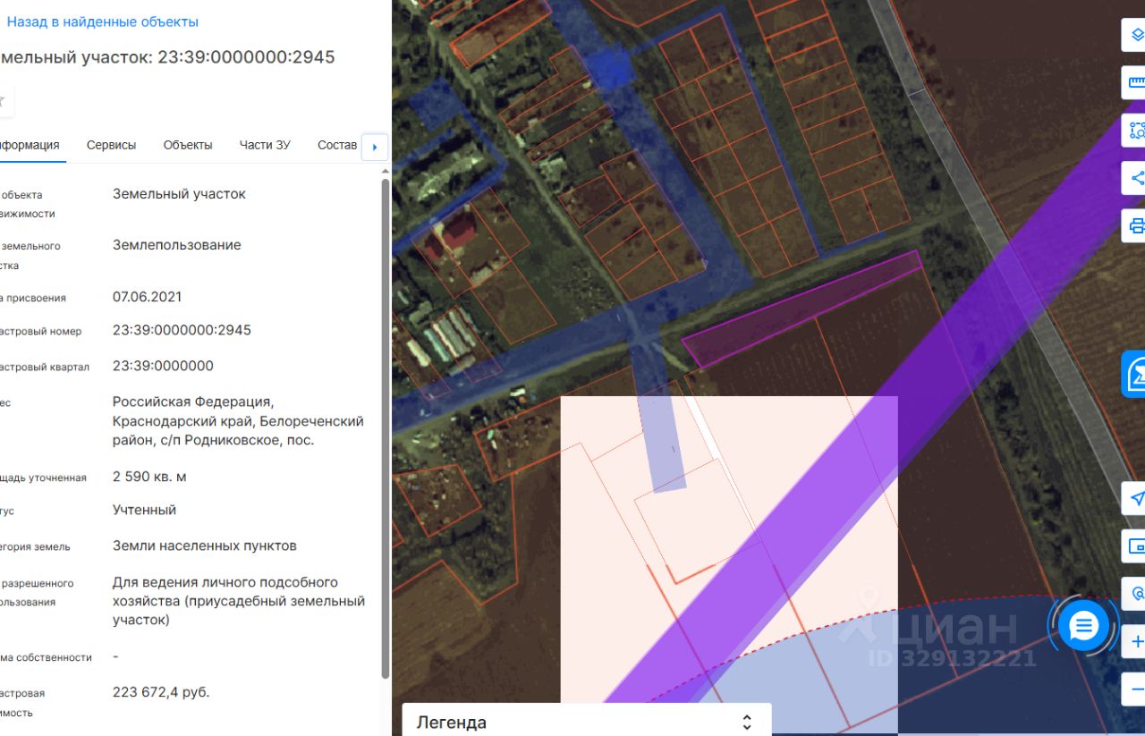 Земельный участок, расположенный по адресу:Российская Федерация, Краснодарский край, Белореченский муниципальный район, Родниковское с/п., п. Степной, площадью 2590 кв.м., кадастровый номер 23:39:0000000:2945, категория земель земли населенных пунктов, разрешенный вид использования для ведения личного подсобного хозяйства (приусадебный земельный участок)