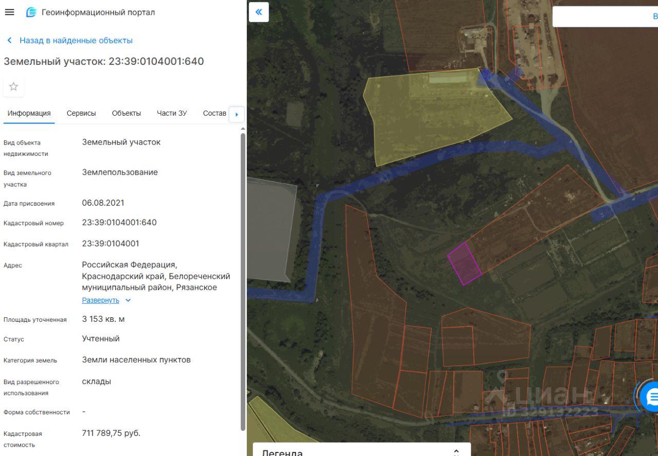 Земельный участок, расположенный по адресу:Российская Федерация, Краснодарский край, Белореченский муниципальный район, Рязанское с/п., ст. Рязанская, площадью 3153 кв.м., кадастровый номер 23:39:0104001:640, категория земель земли населенных пунктов, разрешенный вид использования склады