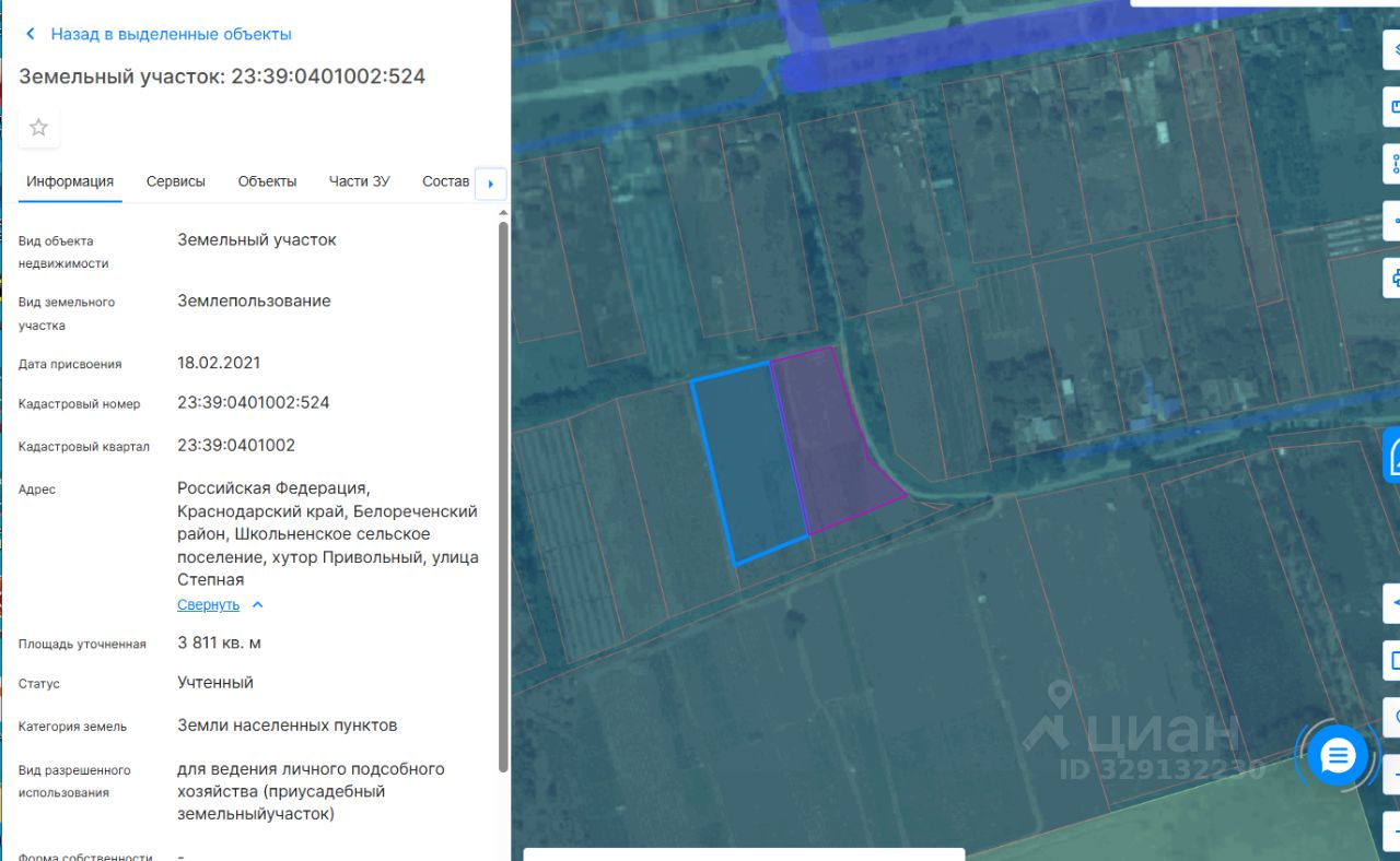 Земельный участок, расположенный по адресу:Российская Федерация, Краснодарский край, Белореченский муниципальный район, Школьненское с/п., х. Привольный, ул. Степная, площадью 3811 кв.м., кадастровый номер 23:39:0401002:524, категория земель земли населенных пунктов, разрешенный вид использования для ведения личного подсобного хозяйства (приусадебный земельный участок)