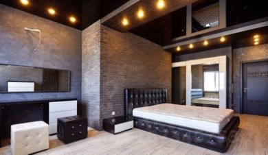 Спальное помещение: требует особого подхода к его оформлению в стиле лофт-фьюжн. Использование контрастных цветов, при этом обязательное присутствие светлого цвета создает успокаивающую обстановку, что является характерным для спального помещения.