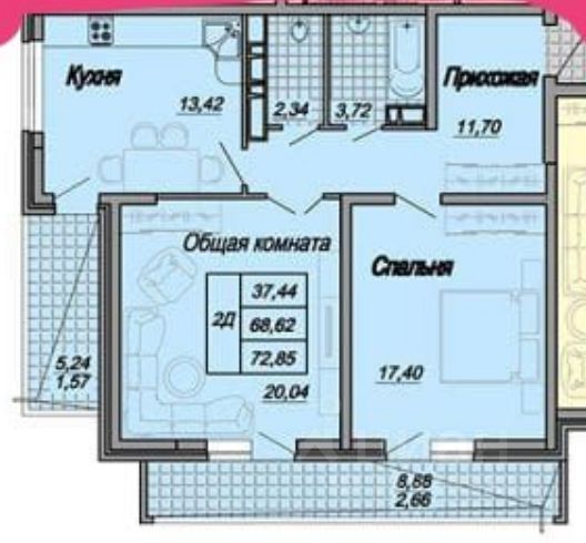 Просторная и светлая 2-комнатная квартира, площадью 68,8 кв.м в одном из лучших и самых удобных районов города - Фестивальном.