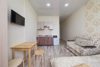 Грамотно спланированное пространство студии и отсутствие нагромождения аксессуаров создают полноценный комфорт для наших гостей. Гостиница ориентирована на деловых людей, которым предлагаются все условия для плодотворной работы и спокойного отдыха.