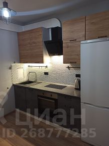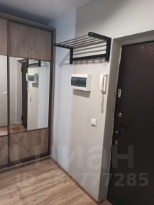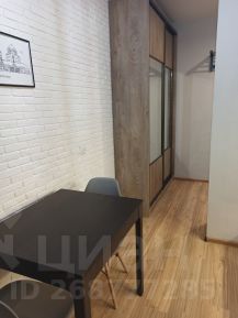 Однокомнатная квартира-студия 26 кв.м. Спальня отделена от кухни стеной с дверью.