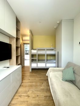 Апартаменты предназначены как для круглогодичного проживания, так и для комфортного отдыха Вас и Вашей семьи. В нашем комплексе представлены Апартаменты категорий: СТАНДАРТ, КОМФОРТ,ЛЮКС. Из окон апартаментов одной части дома открываются живописные виды на заснеженные вершины Красной Поляны, из окон другой части дома открываются виды на Олимпийский парк и Черное море. Окна других апартаментов выходят на ухоженный внутренний дворик и детскую площадку.