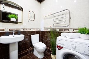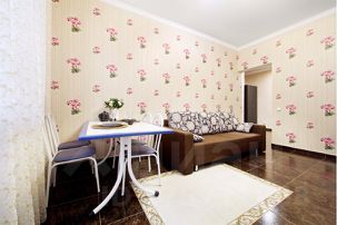 В апартаментах есть всё, чтобы вам было уютно и комфортно как дома. В квартирах выполнен европейский ремонт и создан стильный интерьер. Панорамные окна открывают чудесный вид на центр города. Современная кухня оборудована всей необходимой бытовой техникой (холодильник, микроволновая печь, индукционная плита с сенсорным управлением, чайник), в ней также имеются посуда и столовые приборы. В комнате стоит большая удобная кровать с ортопедическим матрасом , на кухне раскладывающийся двухспальный диван.