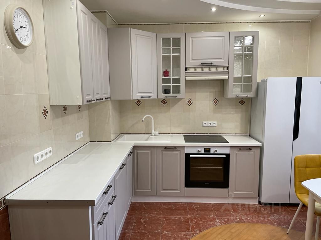 Бытовая техника: электропанель, духовой шкаф, вытяжка, двухдверный холодильник, посудомоечная машина, смарт-телевизор LED с диагональю 58 дюймов, пылесос и так далее.