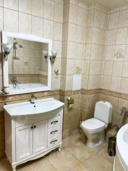 Дизайн квартиры в классическом стиле, приятные теплые тона. В квартире два просторных санузла. Установлена стиральная машина. Также проведен высокоскоростной интернет, телевидение.
