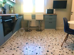 Просторная кухонная зона с барной стойкой у окна оборудована всем необходимым для приготовления пищи, посудой и качественной современной техникой: варочная панель, большая посудомойка, холодильник, СВЧ, духовой шкаф, чайник, кофеварка, мультиварка, погружной блендер (миксер), тостер.
