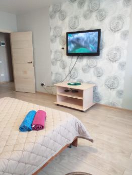 В новом доме, новая квартира, есть все самое необходимое для комфортного проживания: двуспальная кровать, диван, холодильник, ТВ, стиральная машина, утюг, фен, микроволновая печь, постельное белье, полотенца, посуда, туалетные принадлежности.