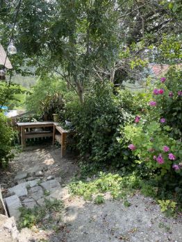 Отдельный вход во внутренний дворик с летней обеденной зоной.