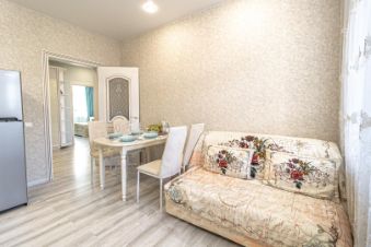 Полноценная 2-х комнатная квартира, изолированная межкомнатными дверями. Удобная 2-х спальная кровать 180-200 с ортопедическим матрасом, большой удобный 2-х спальный диван, рядом в спальне стоит новый диван полуторка 106/200, и на кухне раскладной диван 160-200. В квартире много мебели, что способствует удобному расположению и размещению одежды. Кухня оборудована всем необходимым - посуда на 6 персон. Постельные комплекты высокого качества. Мягкие полотенца в нужном количестве. В квартире всегда чистота и порядок.